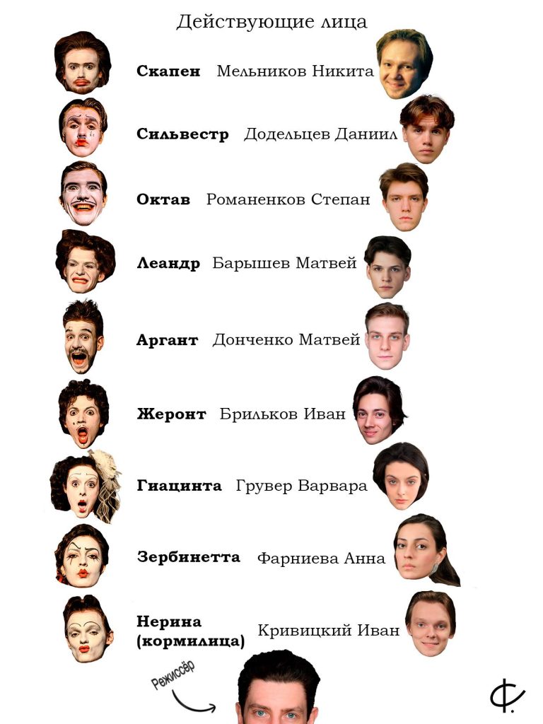 В спектакле принимают участие студенты мастерской заслуженного артиста РФ А.Л. Фёдорова (ВГИК)