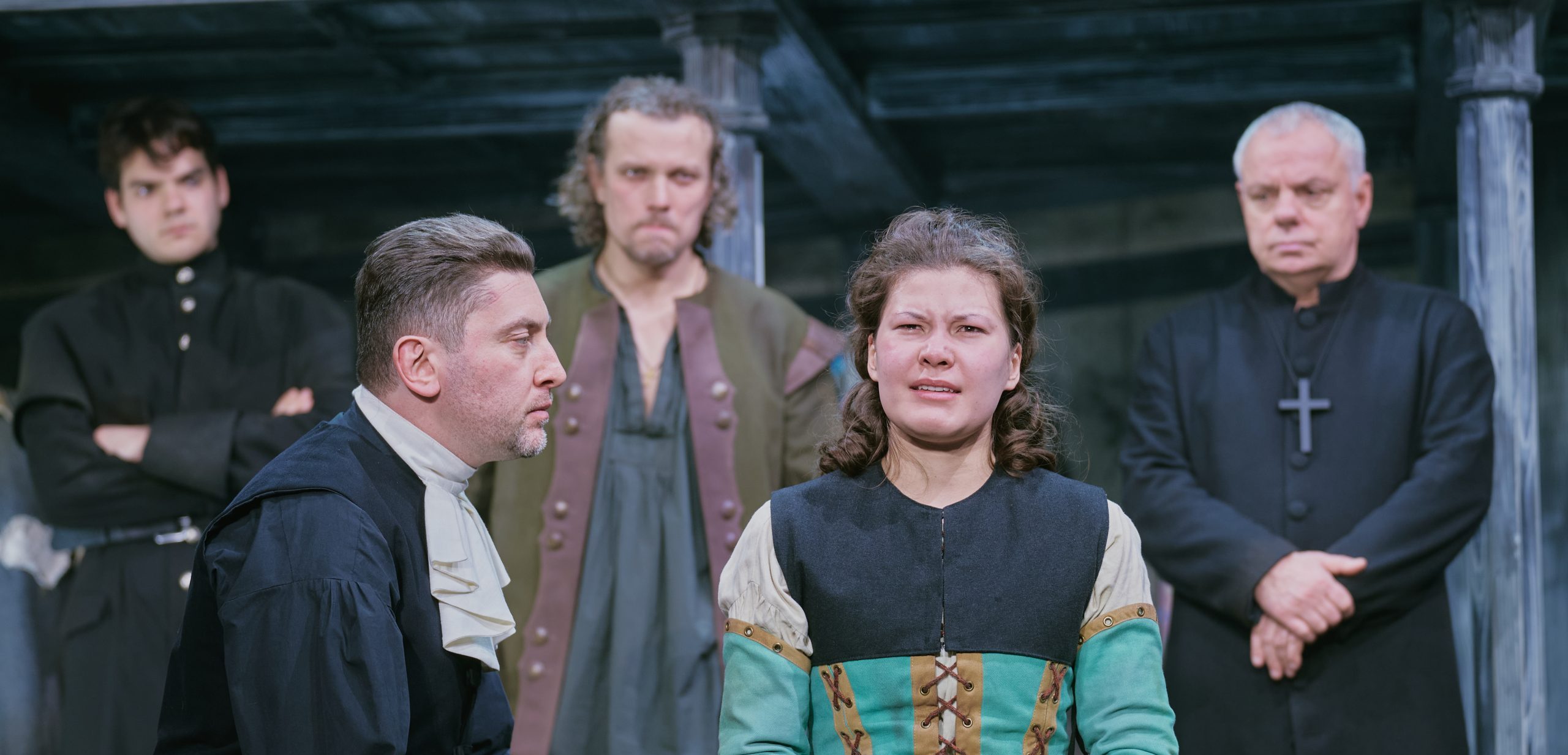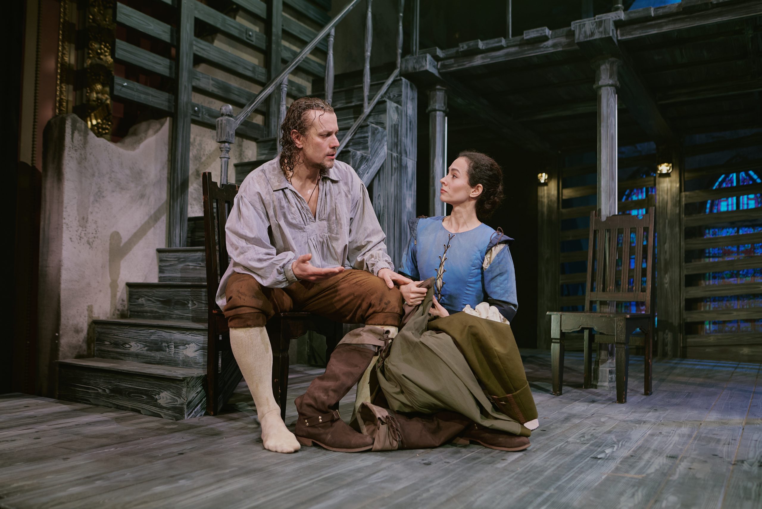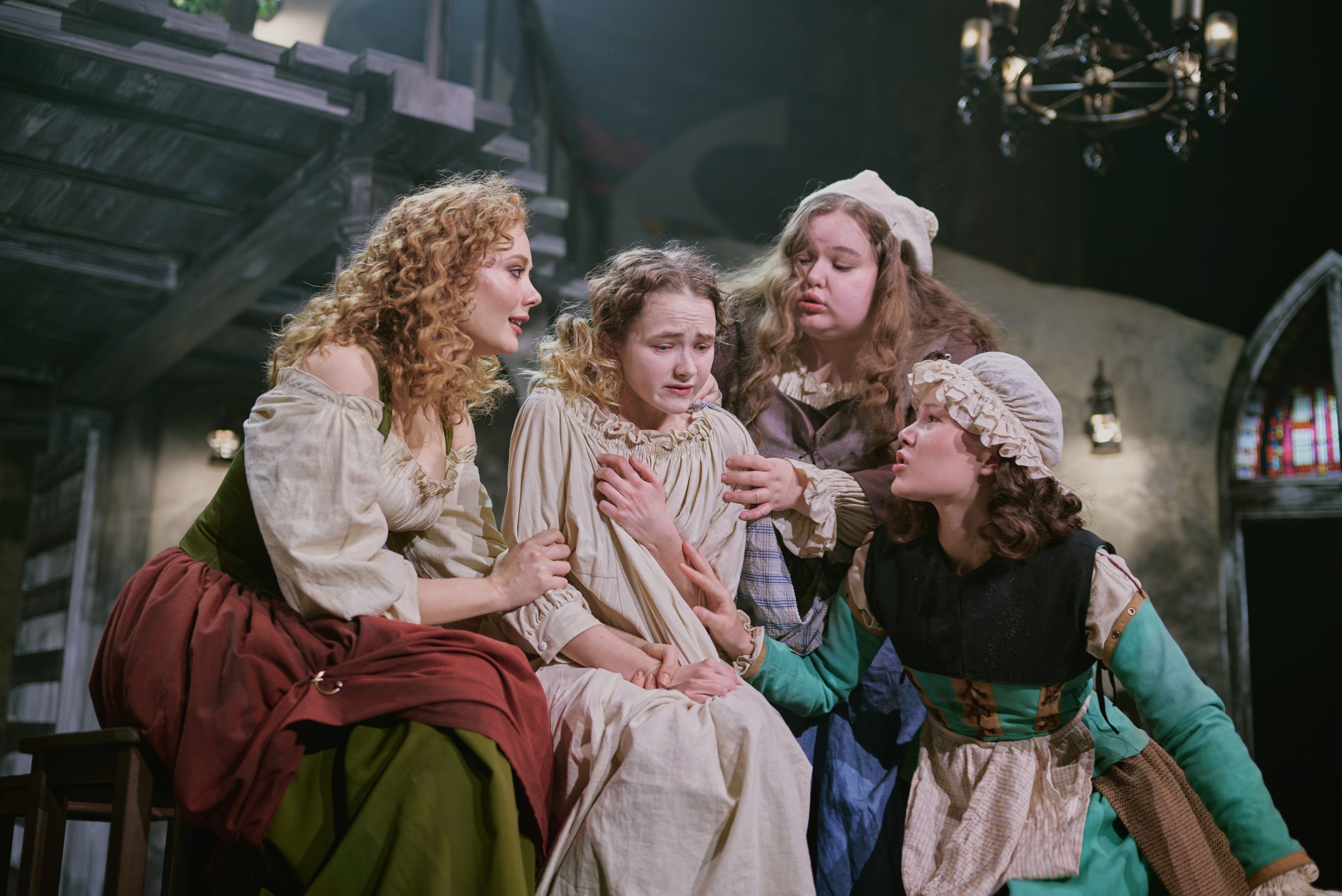 В спектакле зритель окунётся в атмосферу американской деревни 17 века. Соломенные крыши, деревянные заборы, колодцы — всё создано с исторической точностью.